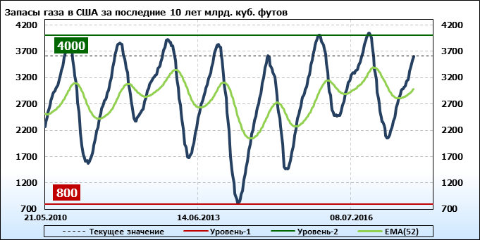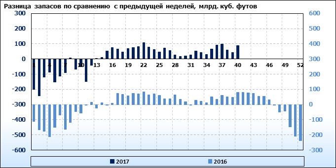 Запасы газа в США. EIA (U.S. Energy Information Administration). Данные на 05.10.2017