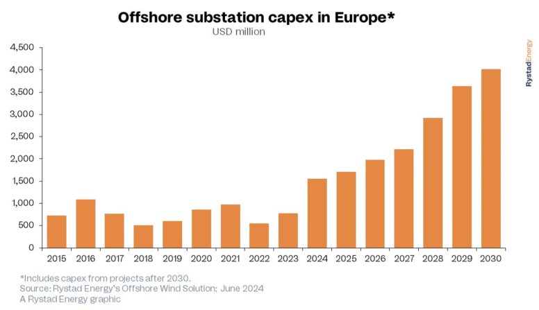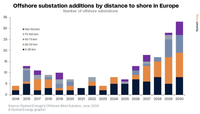 Расширение морских ветроэнергетических проектов и их удаленность от берега способствуют резкому увеличению числа ВЭС, поскольку, для проектов, превышающих мощность в 1 гигаватт (ГВт) требуется несколько электростанций. Многие европейские страны поставили амбициозные цели по установке ВЭС, которые должны превратить континент в центр управления работой станций. Только в 2024 году в Европе планируется установить восемь новых ВЭС, что вдвое больше, чем в прошлом году. В этом году новые ВЭС будут устанавливаться только для ветроэнергетических проектов, расположенных в пределах 50 км от побережья. Тем не менее ожидается, что к концу десятилетия значительно увеличится число ветряных турбин за пределами 50 км от берега, что приведет к росту спроса на шельфовые ВЭС.