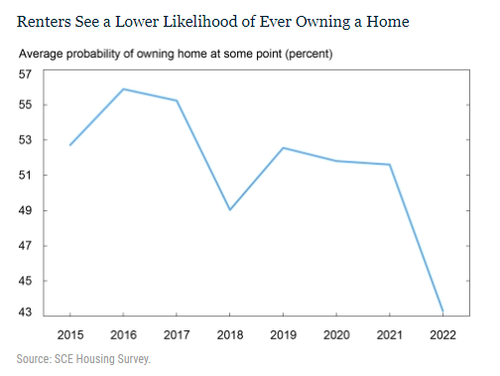 Опрос показал, что только 43,4% арендаторов верят, что они когда-нибудь будут владеть собственным домом. Впервые за всю историю опроса этот показатель ниже 50%.
