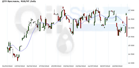 По мнению Максима Симакова из НК «Меркурий», сложно дать прогноз на весь месяц. «Цены могут подняться или упасть, нам приходится работать в режиме on-line. Постоянный мониторинг спроса, цен на биржах, — рассказывает Максим. – Сейчас рынок очень вялый, по моим наблюдениям, но это может измениться в любой момент. Правда, резкого подъема цен не предвидится. Лично я считаю, что в I декаде сентября цена вообще не изменится. А вот октябрь, думаю, будет более интересным. Здесь существуют один очень важный нюанс: подготовка к отоплению — заводы будут переходить на зимние виды топлива. Спрос на дизельное топливо (зимнее) поднимается, а это означает, что существует вероятность роста цен».
