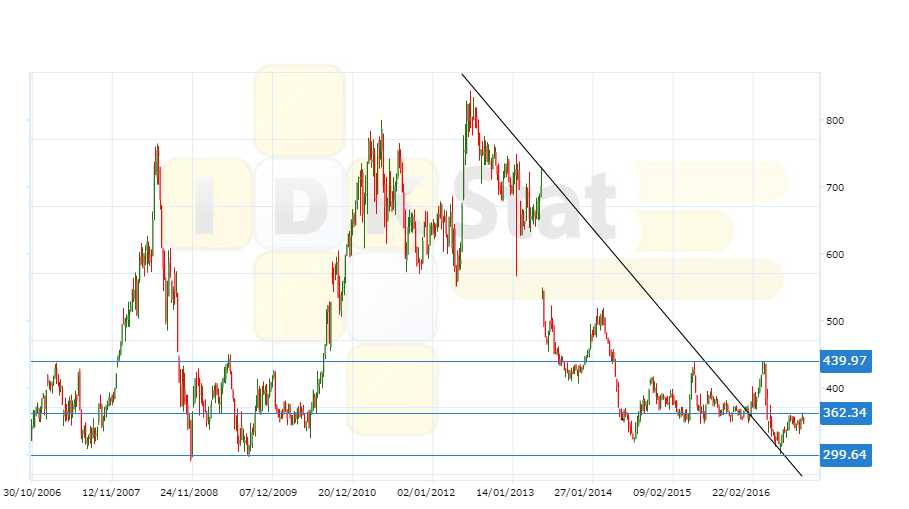 Сценарий роста:не справилась пшеница с ростом и присела к 390.00. Посмотрим на картинку за 10 лет и увидим, что цены более чем на дне. Мы продолжаем ждать спуска к 360.00 и готовим деньги для отличных покупок. Эх, знать бы, когда прозвучит сигнал к атаке. Можно капельку рискнуть. Саму малость.