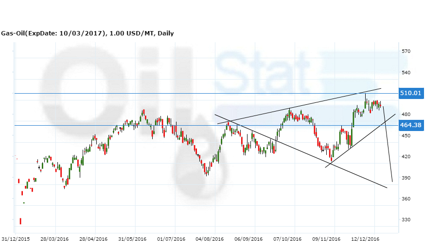 Фундамент: число новых буровых установок в США за неделю выросло на 13 единиц до 523. Тренд становится более агрессивным, что будет давить на рынок.Запасы моторного топлива упали на -1.3 млн. баррелей (EIA). Запасы дистиллятов упали на 2.4 млн. баррелей (API).