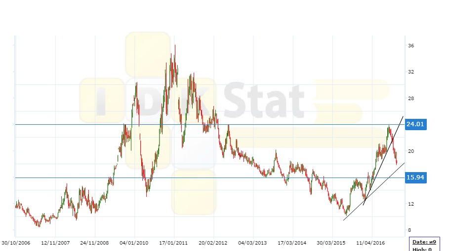 Сценарий падения:в теории цены могут продолжать лететь вплоть до 8.00, но качественно, по высоким ценам, войти в шорт без нового подъема цен не представляется возможным. Более того мы не ждем, что цены смогут пробить вниз 16.00, поэтому о продажах даже думаем здесь с большой неохотой.