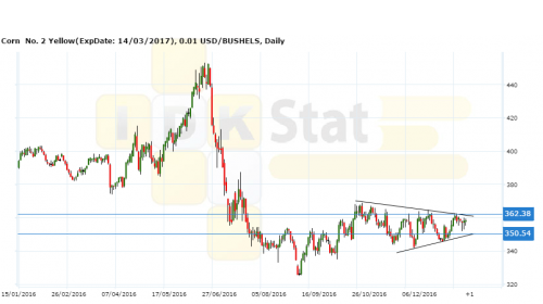 Сценарий падения: пока мы не пробились выше 366.00 возможны провокационные проливы. Но так-как рынок кукурузы и без того находиться в низине, потенциал медвежьих движений ограничен. Не продаем.