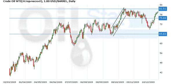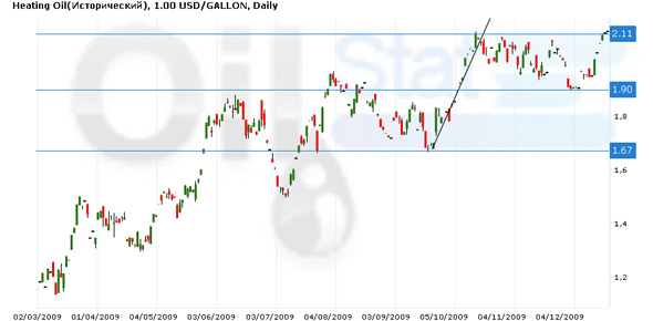 Второй график, отображающий динамику heating oil за 2009 год, позволяет нам также наблюдать повышательный тренд.