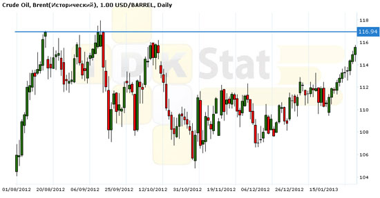 В четверг, 31 января, цены на нефть изменились разнонаправлено: Brent находился под давлением статистики из Германии (там безработица в январе впервые за десять месяцев снизилась с 6,9% до 6,8%), WTI своим ростом отразила беспокойство в отношении восстановления функционирования нефтепровода Seaway запасов нефти и негативные данные с рынку труда США. Так, оператор нефтепровода (компания Enterprise Products Partners LP) сообщила, что трудности, которые в настоящий момент ограничивают мощности Seaway, будут преодолены лишь к IV кварталу 2013г.