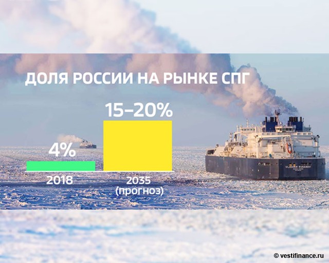 Доля России на рынке СПГ в 2018 и 2035 годах