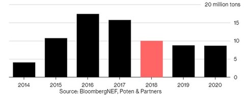 По прогнозам BNEF, Бахрейн — единственная страна, которая увеличит импорт СПГ в 2019 г., но не достигнет значительных объемов до 2022 г.