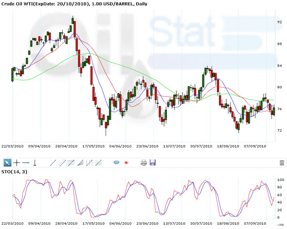 Цена нефти WTI понизилась с начала дня в отличие от Brent, что обусловлено завершением сегодня контрактного периода по фьючерсу Light Sweet с поставкой в октябре и переносом основного интереса по сделкам на контракты с поставкой в ноябре. Сегодня инвестиционный банк Credit Suisse понизил собственные прогнозы относительно возможной цены нефти WTI в текущем и следующем годах. Так, прогноз по нефти WTI на 2010г был снижен до $76,90 с $79,10, а прогноз на 2011г был снижен до $72,50 с $80,00.