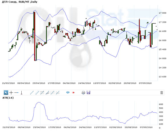 Во вторник индикатор цен «eOil» -ДТЛ на базисе «Сокур» снизился на 233 руб. до 16 678,96 руб. за тонну. Расстояние между линией поддержки и линией сопротивления начинает увеличиваться, что может свидетельствовать о том, что в ближайшее время диапазон цен станет шире, а кроме того может измениться направление тренда. ATR постепенно растет, что также говорит о потенциальном развороте, если этот индикатор достигнет пика. А пока что понижательная тенденция наблюдается третий день. За это время падение составило 425,79 руб.
