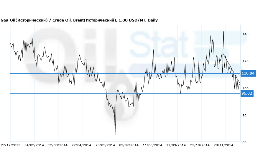 Спрэд: Gas-Oil(ICE)/Brent (ICE).