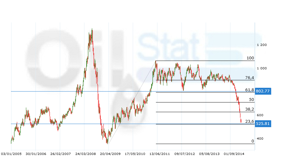 Сценарий падения:медведи поддавливают, но стратегически продавцов не осталось. Опять же, с долгосрочной точки зрения, интересным выглядит уровень 800.00, более низкие остановки с большой долей вероятности также будут соответствовать уровням Фибоначчи.