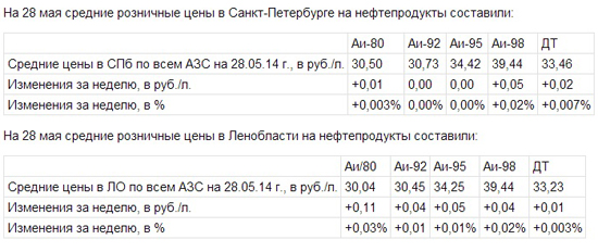 По данным мониторинга Аu92 (в мониторинге участвует 470 АЗС в Санкт-Петербурге и 220 АЗС в Ленобласти), средние розничные цены на бензины в Петербурге в течение недели, с 21 по 28 мая, менялись незначительно.