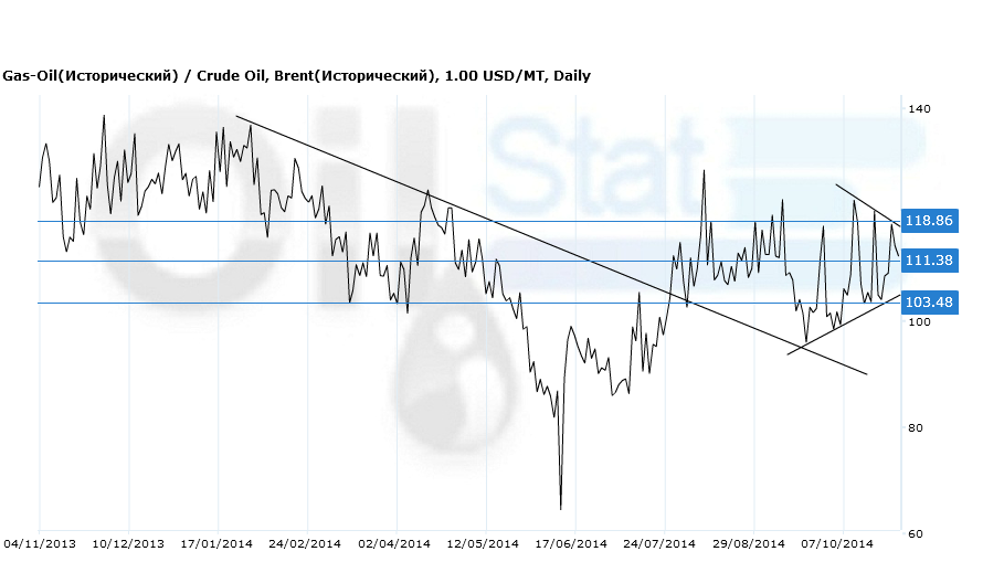 Спрэд: Gas-Oil(ICE)/Brent (ICE).