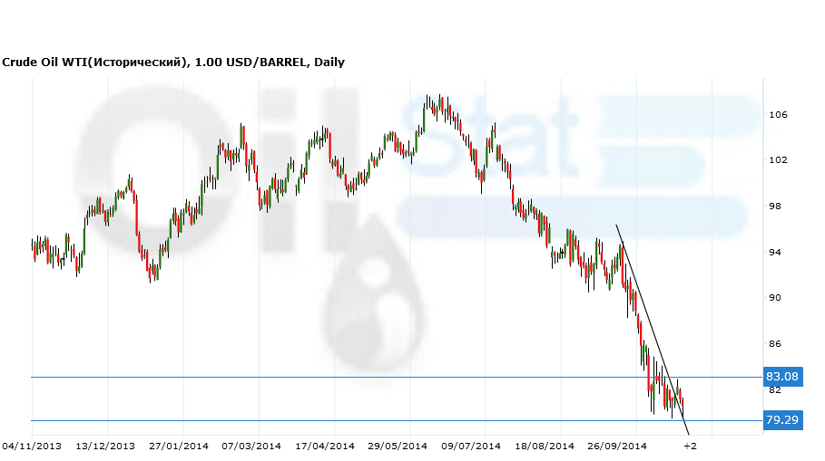 Цена фьючерса на нефть WTI на октябрь на электронных торгах Нью-йоркской товарной биржи уменьшилась к этому времени на $0,40 (0,50%) — до $80,15 за баррель.