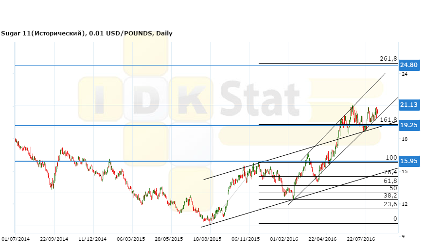 Сценарий роста:перед нами двухлетняя история сахара. Пока для быков и для наших позиций все складывается нормально. Мы отошли от критического района 19.50 и имеем шанс выйти на тропу к 25.00, для этого необходимо брать 21.13, чем рынок и займется на следующей неделе.