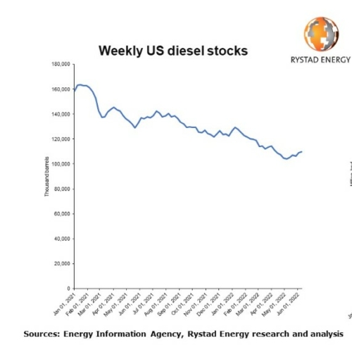 Учитывая указанные выше показатели, Rystad Energy полагает, что лёгкое увеличение предложения бензина на этой неделе является лишь временным, и следует ожидать дальнейшего роста дефицита. Уровни запасов бензина в США продолжают свою тенденцию на понижение, от 246 млн. барр. в конце февраля 2022 года до 217 млн. барр. на настоящее время.