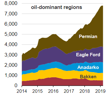 По состоянию на март 2019 года, почти половина всех пробуренных, но не освоенных скважин находилась в Permian Basin.
