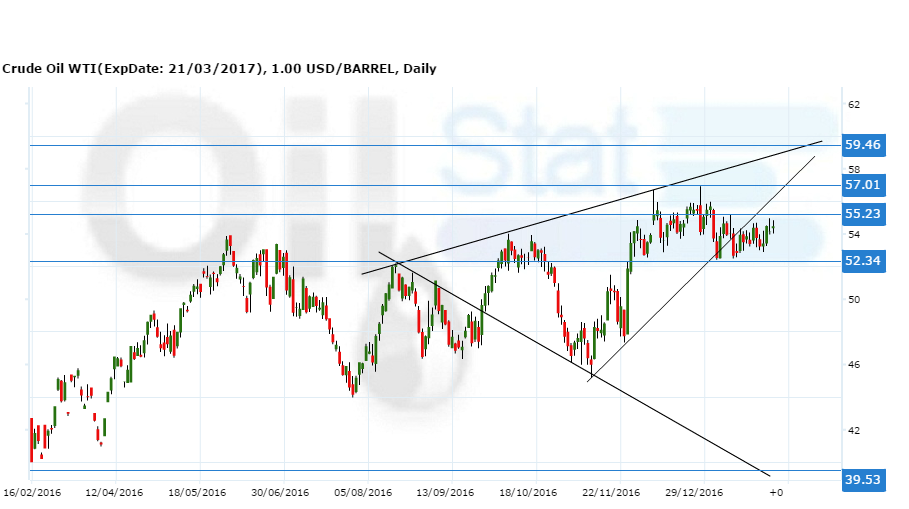 Фундамент: число новых буровых установок в США за неделю выросло на 17 единиц до 583.Темпы не падают. А с учетом политической парадигмы вряд ли этот спад будет.Запасы нефти и нефтепродуктов выросли на 5.3млн. баррелей (EIA). Запасы моторного топлива выросли на 3.9млн. баррелей (EIA).Запасы растут, мощности по добыче растут. И цена растет. Так вечно не будет продолжаться.