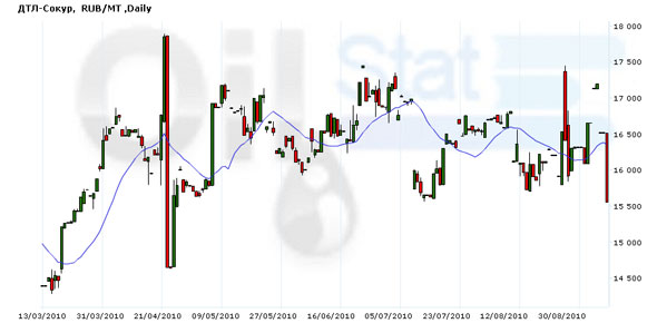 В понедельник появился прогноз Министерства финансов РФ, согласно которому предельный уровень экспортной пошлины на нефть в октябре составит $265-$267 за тонну, на восточносибирскую нефть – $81-$83 за тонну. На данный момент экспортная пошлина на нефть в России равна $273,5 за тонну, в Восточной Сибири – $87 за тонну. В итоге снижение составит не боле $10 за тонну. Но даже такое изменение экспортной пошлины даст возможность производителям поднять цены на нефтепродукты на внутреннем рынке. Хотя, по наблюдениям трейдеров, постепенный рост цен прослеживается уже как минимум неделю.