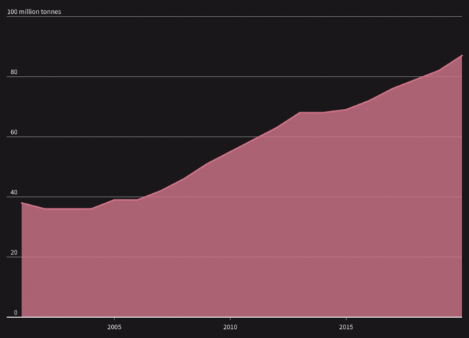 Объемы продаж коммерческих автомобилей в Индии (которые тоже зачастую имеют дизельные двигатели) в прошлом году возросли до рекордного уровня. По данным Refinitiv Eikon, в январе 2019 года число продаж коммерческих единиц транспорта достигло 87,600.