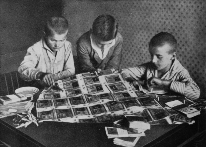 Мальчики используют бесполезные банкноты для декоративно-прикладного искусства, 1923 год