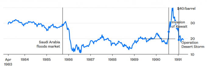 Несмотря на то, что данный уровень цен почти не отличается от показателей 1985 года (до того, как Саудовская Аравия затопила рынок), такого ценового скачка оказалось достаточно, чтобы спровоцировать мировую рецессию в начале 1990-х.