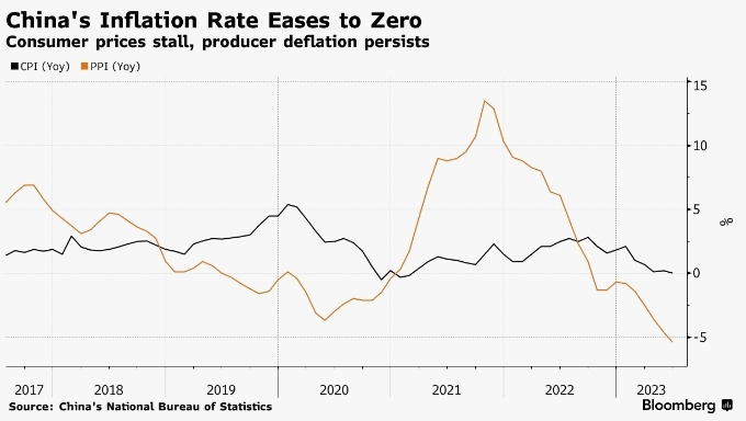 Уровень потребительской инфляции в Китае в июне остался на прежнем уровне, в то время как отпускные цены на заводах продолжили падать, усиливая опасения по поводу рисков дефляции и усиливая спекуляции о потенциальных экономических стимулах.