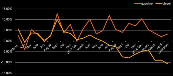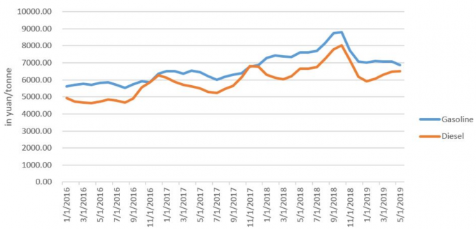 В итоге объемы производства бензина в Китае в первой половине 2019 года возросли по сравнению с предшествующим годом на 2.9%. Вместе с тем, объемы производства дизеля снизились на 7.8%. Об этом указывает Национальное Бюро Статистики.