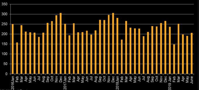 Это больше, чем ожидалось в июне (1 млн. тонн). По сведениям китайской таможни, данный показатель экспорта близок к мартовскому рекорду — 1.69 млн. тонн.