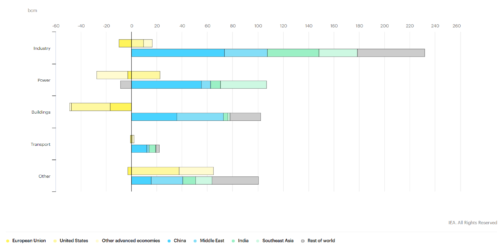 В странах с развитой экономикой в 2030 году спрос на уголь будет на 45% ниже, чем в 2019 году. Вместе с тем, спрос на уголь продолжает расти в таких странах как Индия, Индонезия и другие страны юго-восточной Азии. Впрочем, темпы роста спроса на уголь будут ниже, чем прогнозировалось в предкризисный период.