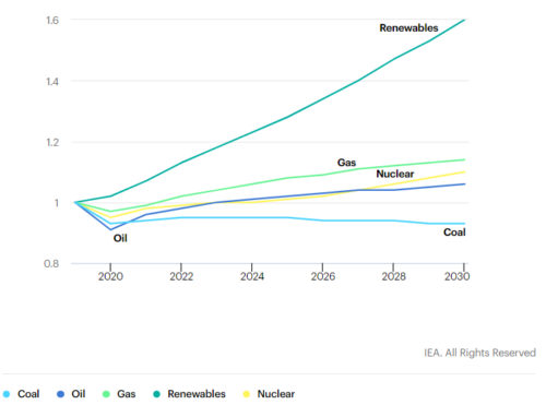 Стремительнее всего будут развиваться возобновляемые источники энергии. Вместе с тем, спрос на уголь в 2020 году резко упал. В дальнейшем спрос на уголь лишь немного возрастет и начнет постепенное снижение.