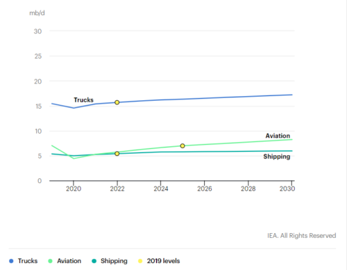 Рис. 5 Спрос на нефть в транспортной отрасли согласно Stated Policies Scenario, 2019-2030 годы