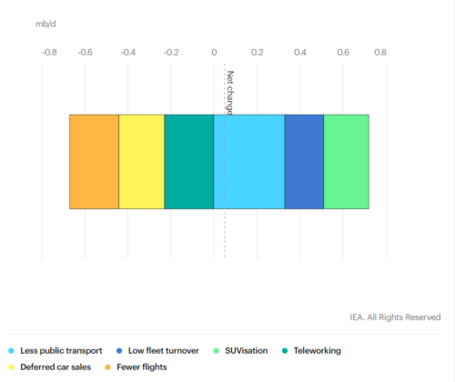 Рис. 9 Воздействие изменения поведения потребителей в транспортной сфере на спрос на нефть согласно Stated Policies Scenario, 2030 год