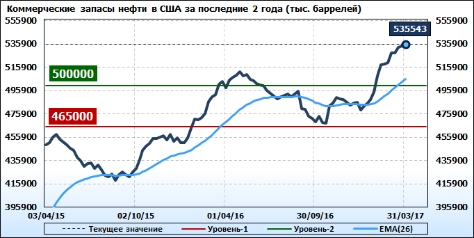 Коммерческие запасы нефти в США. Данные на 05.04.2017