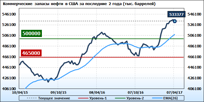 Коммерческие запасы нефти в США. Данные на 12.04.2017