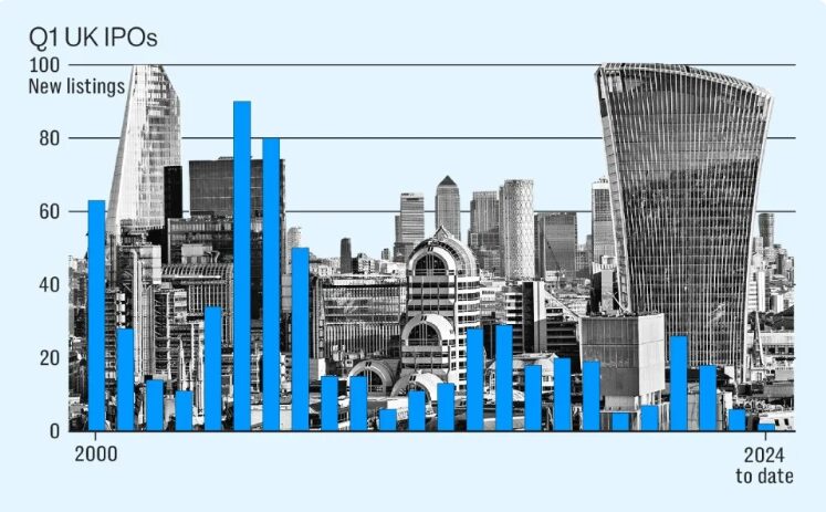 Согласно данным Dealogic, в прошлом квартале на главном лондонском рынке прошло всего два новых листинга. Это наихудший квартал по объёмным показателям с момента, как компания начала собирать данные в 1995 году.