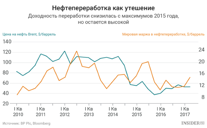 Пять компаний-лидеров, кроме операций, связанных с добычей нефти, управляют нефтеперерабатывающими и нефтехимическими заводами. Это дает им своего рода страховку в период спада цен на сырье и снижения прибыли от его добычи. Доходность от нефтепереработки выросли после обвала цен, так как стоимость сырой нефти снизилась, а спрос на топливо остался высоким. С тех пор маржа в этом сегменте снизилась, но все же осталась на комфортном для компаний уровне.