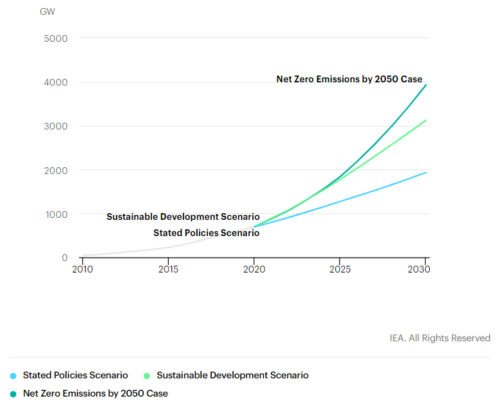 Объемы электроэнергии, производимой на солнечных фермах возрастут со 110 гигаватт до 500 гигаватт.