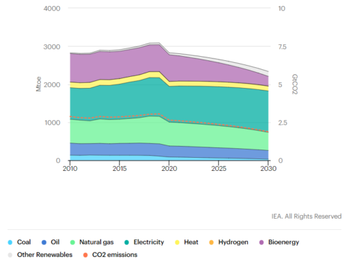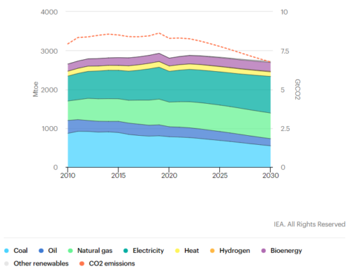 Необходимо, чтобы в период с 2010 по 2030 годы объемы выбросов СО2 в атмосферу в энергетической промышленности сократились на 45%. Это означает, что к 2030 году объемы выбросов СО2 в промышленности не должны превышать 20.1 гигатонн, что на 6.6 гигатонн меньше, чем указывается в сценарии SDS.