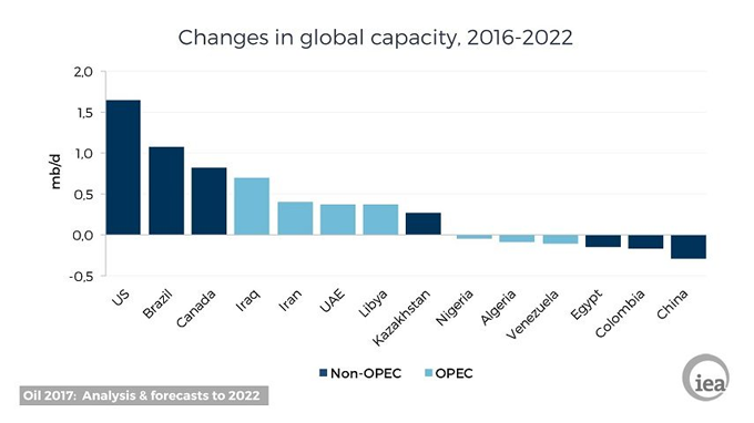 Среди стран-участников ОПЕК, уровень добычи нефти возрастет в Ираке, Иране и ОАЭ. В Нигерии, Алжире и Венесуэле уровень добычи нефти снизится. Уровень добычи нефти в России, предположительно, останется на прежнем уровне в течение последующих пяти лет.