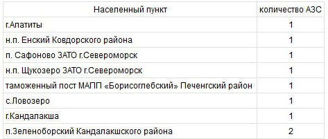 По информации, предоставленной органами местного самоуправления муниципальных образований строительство новых АЗС необходимо в следующих населенных пунктах: