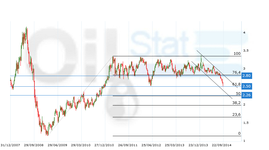 Поддержка–2.50.Сопротивление- 2.80.Сценарий роста:район 2.26 может стать непреодолимым препятствием для медведей. В складывающейся ситуации нам не приходится рассчитывать на разворот с текущих уровней.С другой стороны, продолжаем отмечать, что падающий тренд продолжает ускоряться, что может привести к резкому отскоку.