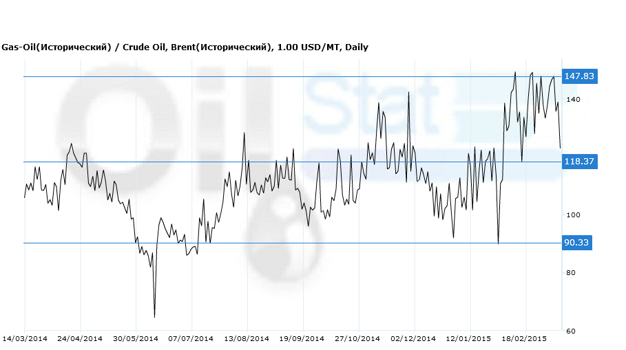 Спрэд: Gas-Oil(ICE)/Brent (ICE).
