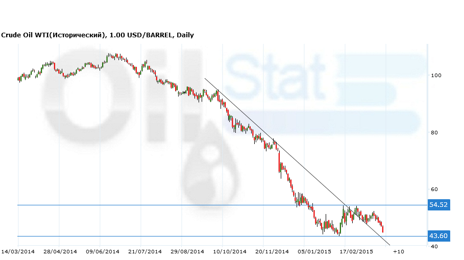 По состоянию на 07.54 мск стоимость апрельского фьючерса на североморскую смесь нефти марки Brent снижалась на 0,64% — до 54,32 доллара за баррель. Стоимость апрельских фьючерсов на нефть марки WTI опускалась на 1,09% — до 44,35 доллара за баррель.