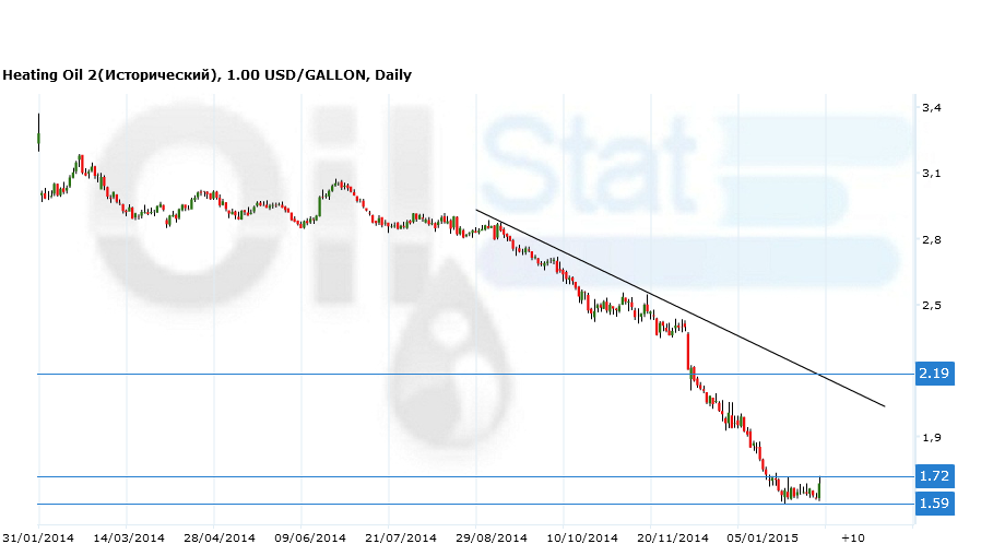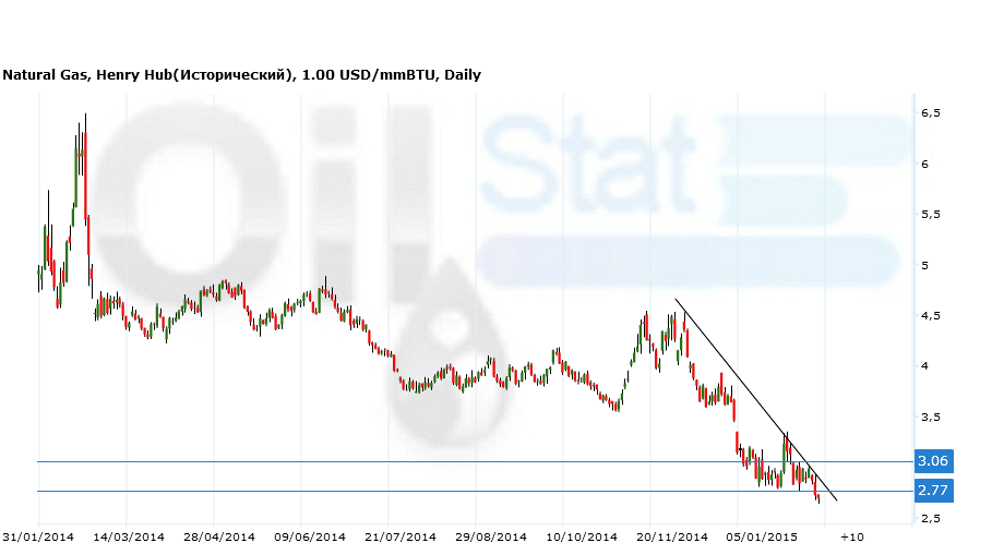 Сценарий роста:бычьих идей на рынке нет. Но есть нюанс. Рынок газа склонен к резким вылетам от минимумов. Если цены сползут к 2.22 или к 2.00 имеет смысл начать большую спекулятивную игру на повышение. В более общем случае, только со взятием линии сопротивления появятся какие-либо идеи.