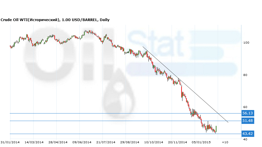 Сценарий падения: как мы отмечали ранее, если рынок закрепиться ниже 48.00, то мы можем войти в «эпоху» низких цен, которая может пролиться более года. Пока наши подозрения оправдываются, даже не смотря на последний рывок. Возможности для шорта откроются от 55.00 и выше при встрече цен и линии сопротивления.