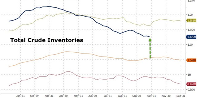 Впрочем, общие запасы нефти и нефтепродуктов находятся на минимуме с 2015 г.