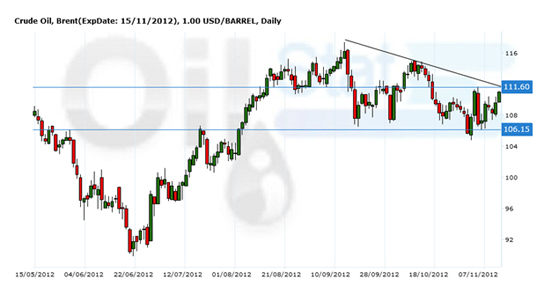 Поддержка Brent находится на отметке 106,15 долл. Сопротивление – на уровне 111,6 долл. Взятие отметк 111,6 долл., откроет ход к первоначальной цели 115 долл., далее 124 долл. и далее 132 долл.