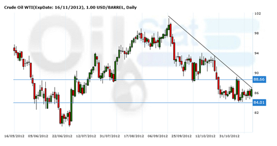 В пятницу произошла экспирация декабрьских фьючерсов на нефть марки WTI. Стоимость январского контракта выросла на 1,05 долл., составив 86,92 долл./барр.